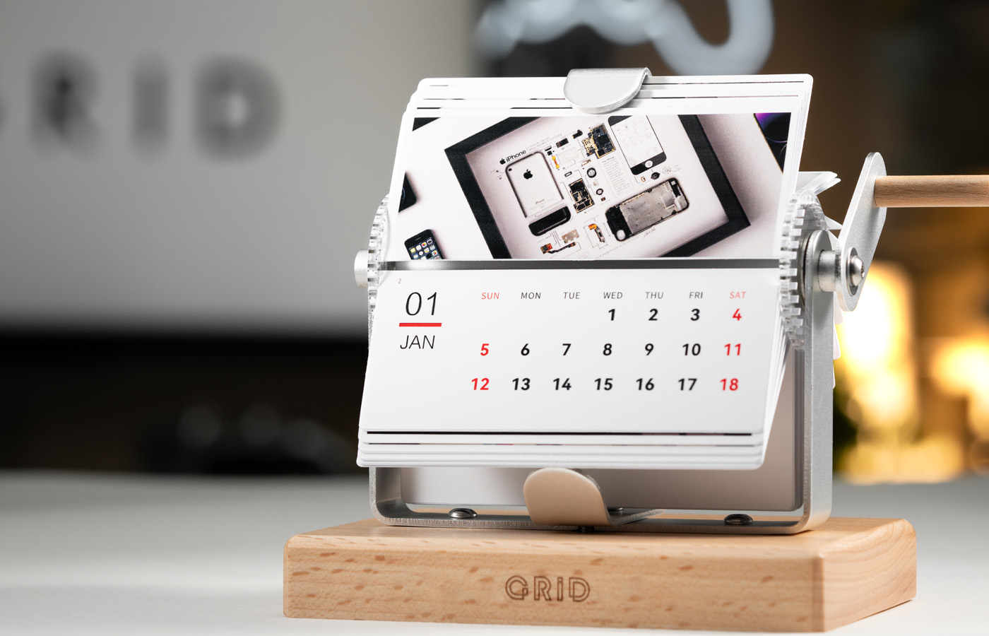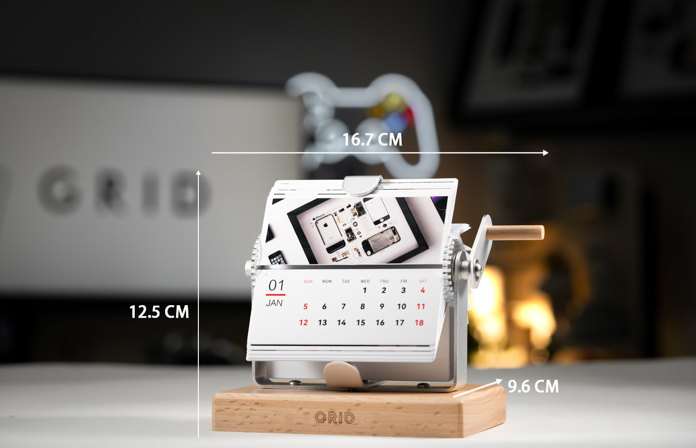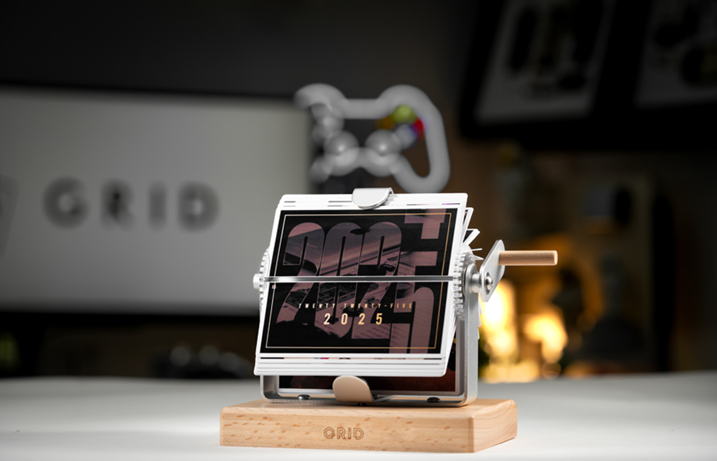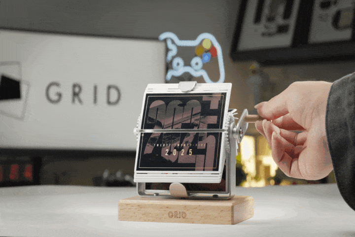 Ring in the New Year with our Grid Retro Mechanical Flip Calendar – a one-of-a-kind collectible. Each page of this vintage-inspired calendar showcases a Grid frame, making it truly unique. The hand-crank mechanism and solid wood base add a nostalgic touch to your space, while the Grid frames featured on every page highlight the craftsmanship of our designs. Perfect for fans of both vintage aesthetics and our signature tech displays.