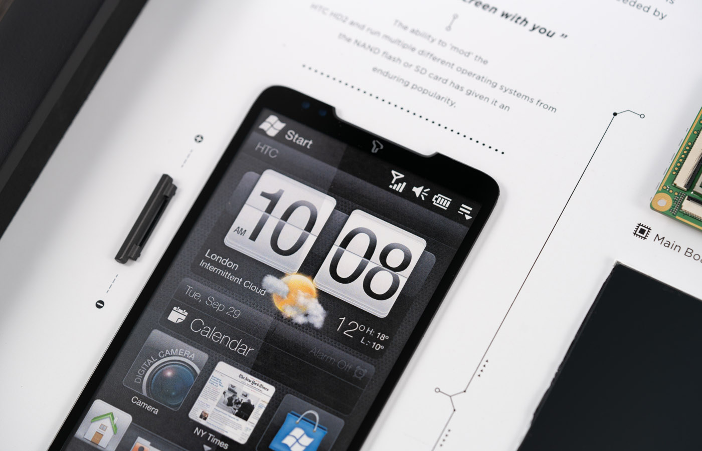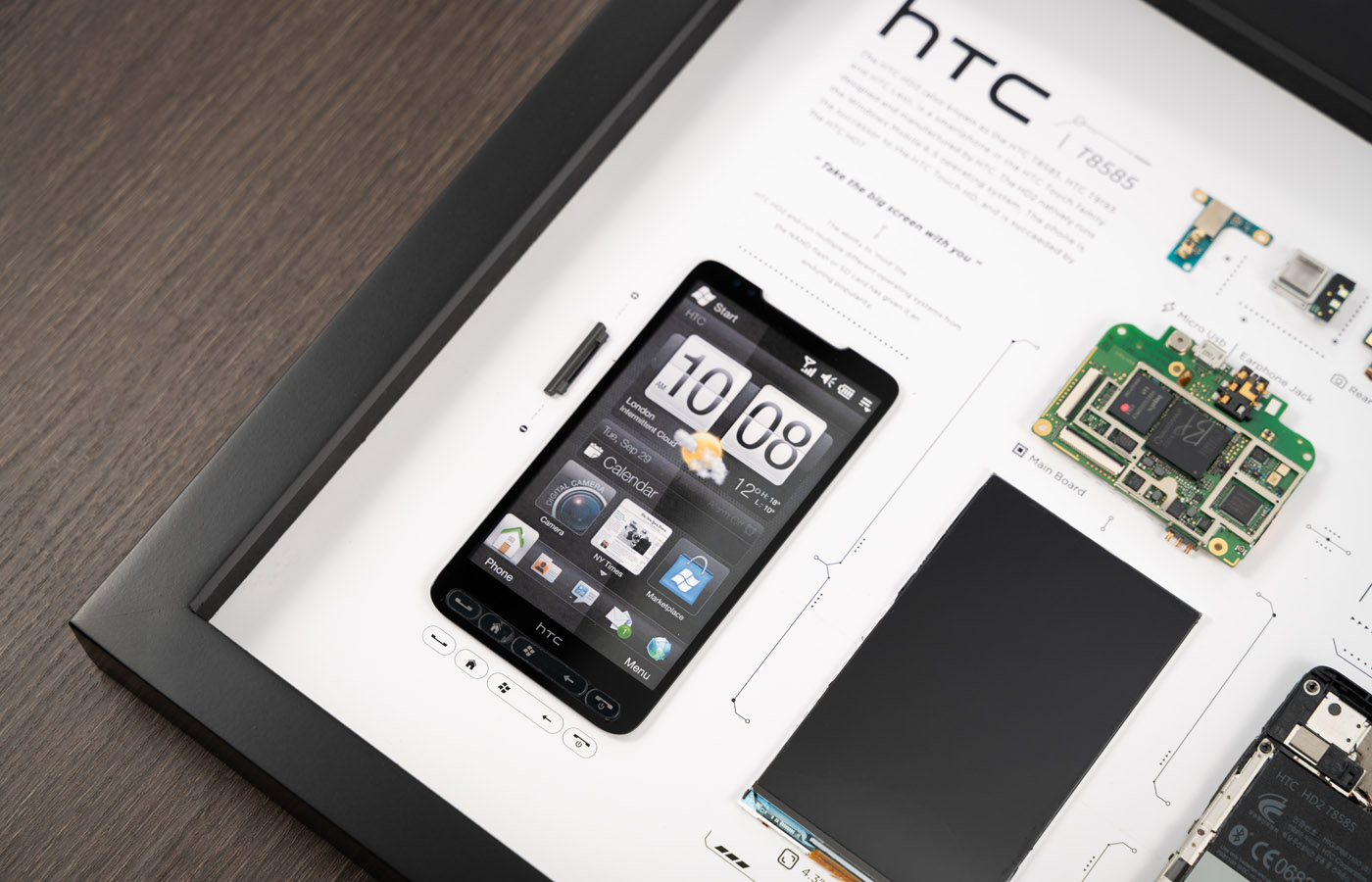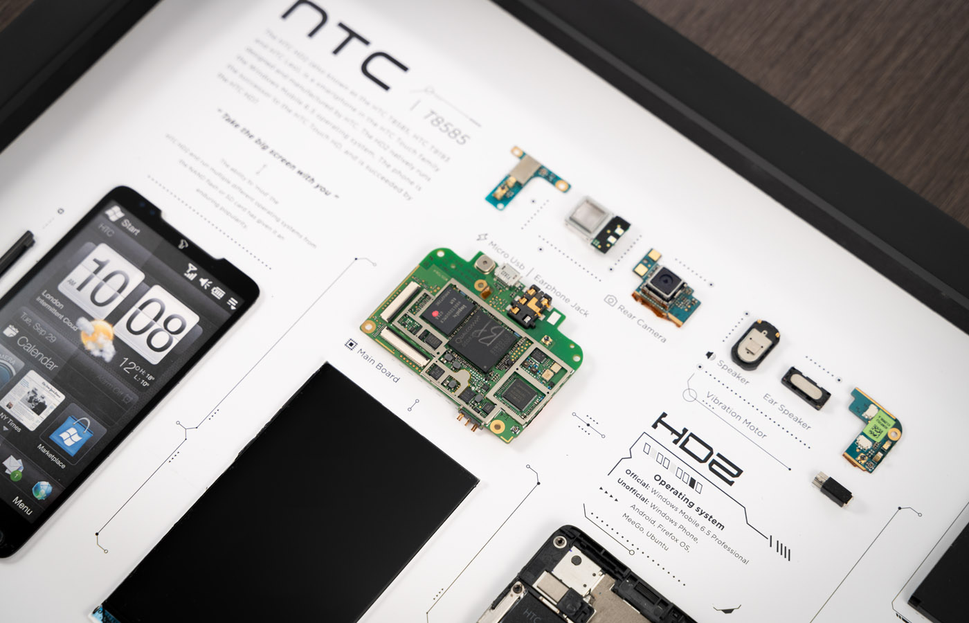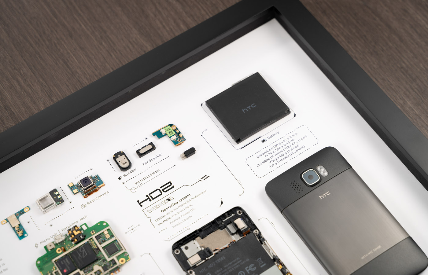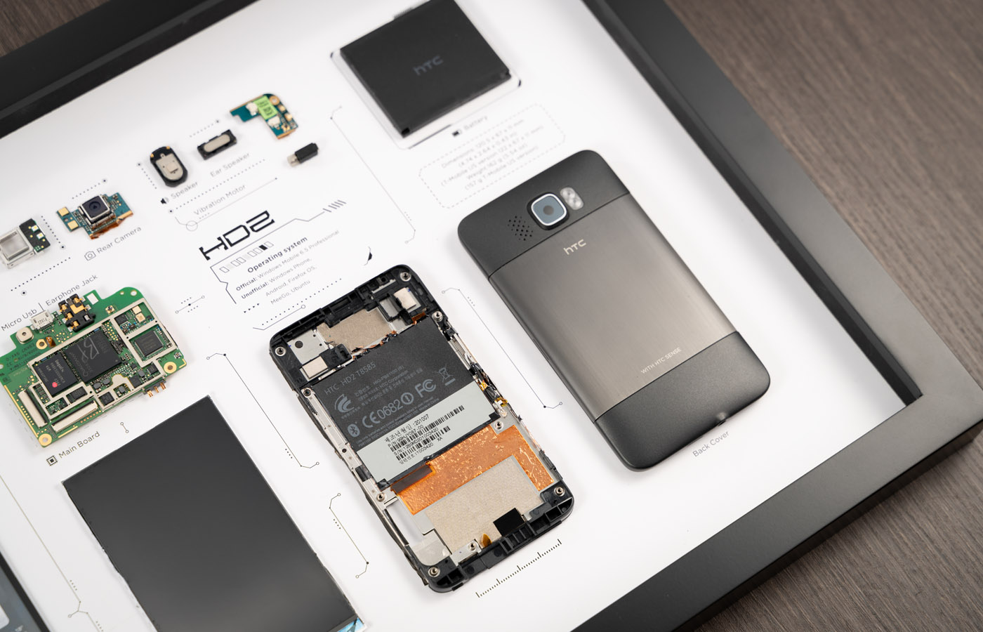Introducing our stunning framed display of the HTC HD2, a revolutionary smartphone that changed the game in 2009. Known as the "King of Custom ROMs," the HD2 is celebrated for its exceptional performance and versatility, allowing users to explore various operating systems. This beautifully crafted frame showcases the iconic device, making it a perfect tribute for tech enthusiasts and collectors alike. Own a piece of smartphone history today!